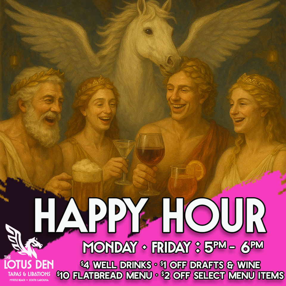 Join us for Happy Hour, Monday through Friday from 5–6 PM, and enjoy exclusive drink specials along with our signature flatbread—available only during that golden hour.